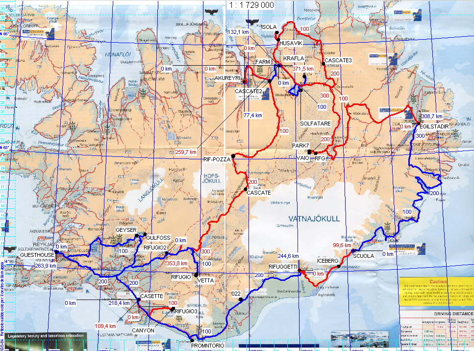 Mappa del viaggio in Islanda dal 2 al 16 Agosto 2004 (Realizzazione Pino Dusi)